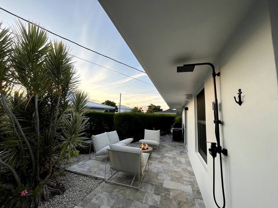 Discover Bahamian Pine, renovated Villa 583 offering a modern beach vibe in The Beach Villa's of Treasure Cay, Abaco. This crisp, clean oasis boasts quality furnishings, a fully equipped kitchen with high-end appliances, and a screened-in dining area. Step outside to find an outdoor shower and a cozy fire pit. Steps to the pool and the beach. Our tranquil retreat is perfect for couples or small families. Let us introduce you to the laid-back, barefoot beach lifestyle. Welcome to paradise!