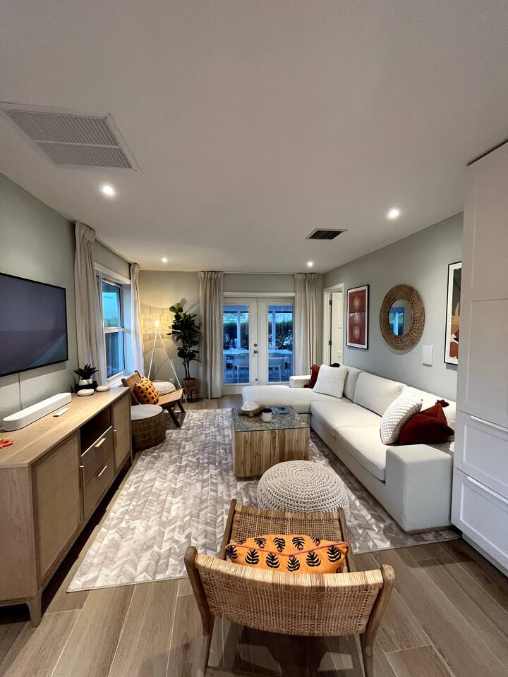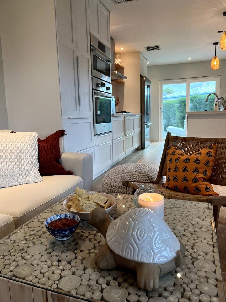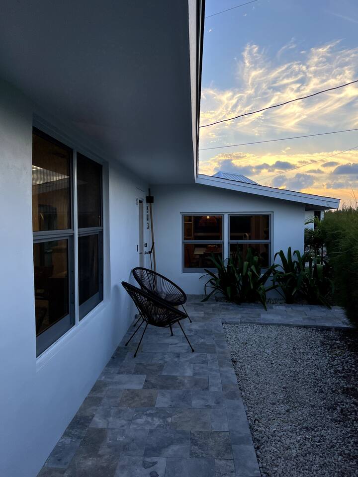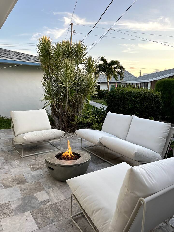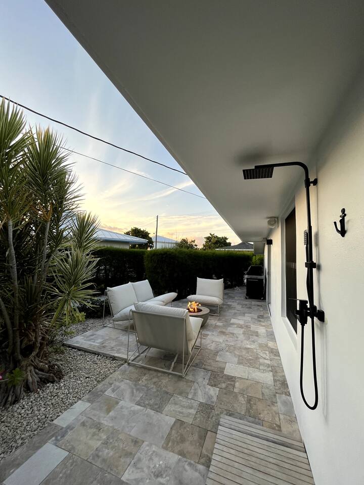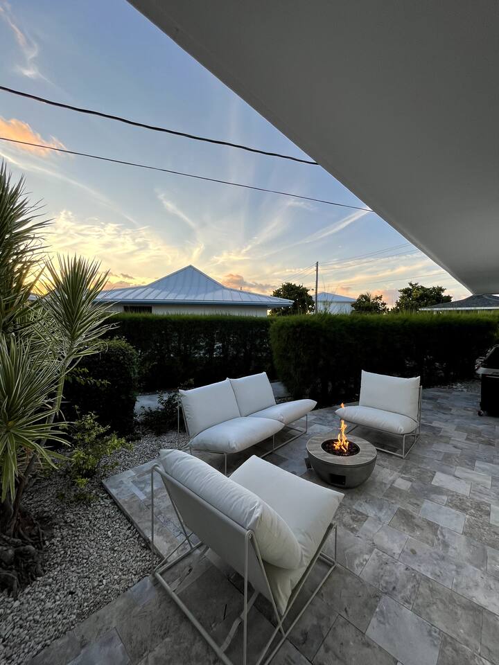 Discover Bahamian Pine, renovated Villa 583 offering a modern beach vibe in The Beach Villa's of Treasure Cay, Abaco. This crisp, clean oasis boasts quality furnishings, a fully equipped kitchen with high-end appliances, and a screened-in dining area. Step outside to find an outdoor shower and a cozy fire pit. Steps to the pool and the beach. Our tranquil retreat is perfect for couples or small families. Let us introduce you to the laid-back, barefoot beach lifestyle. Welcome to paradise!