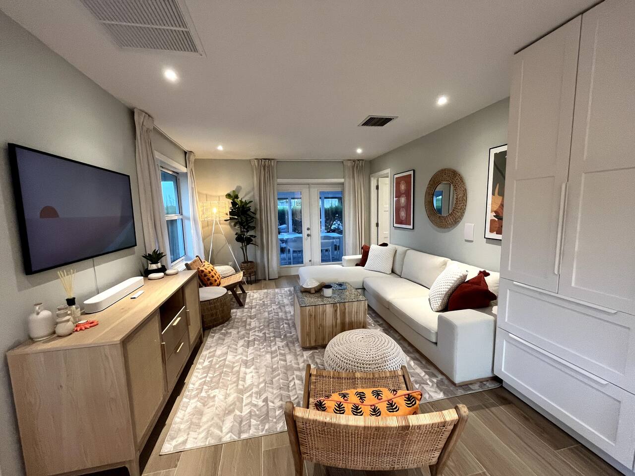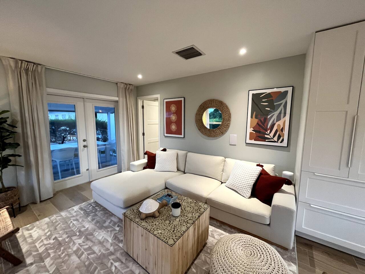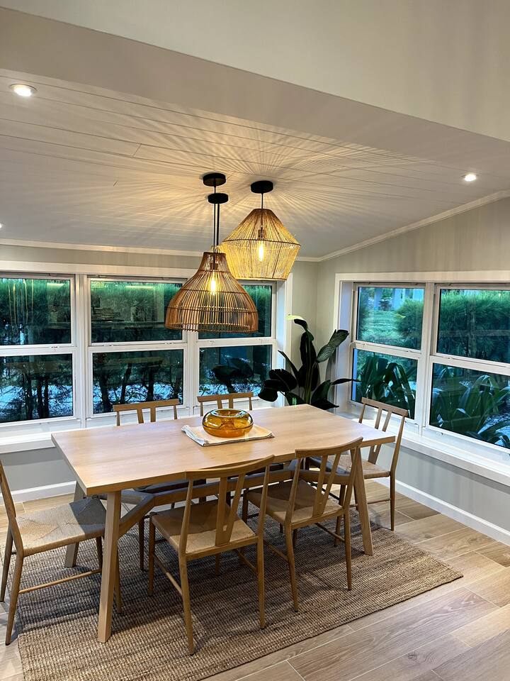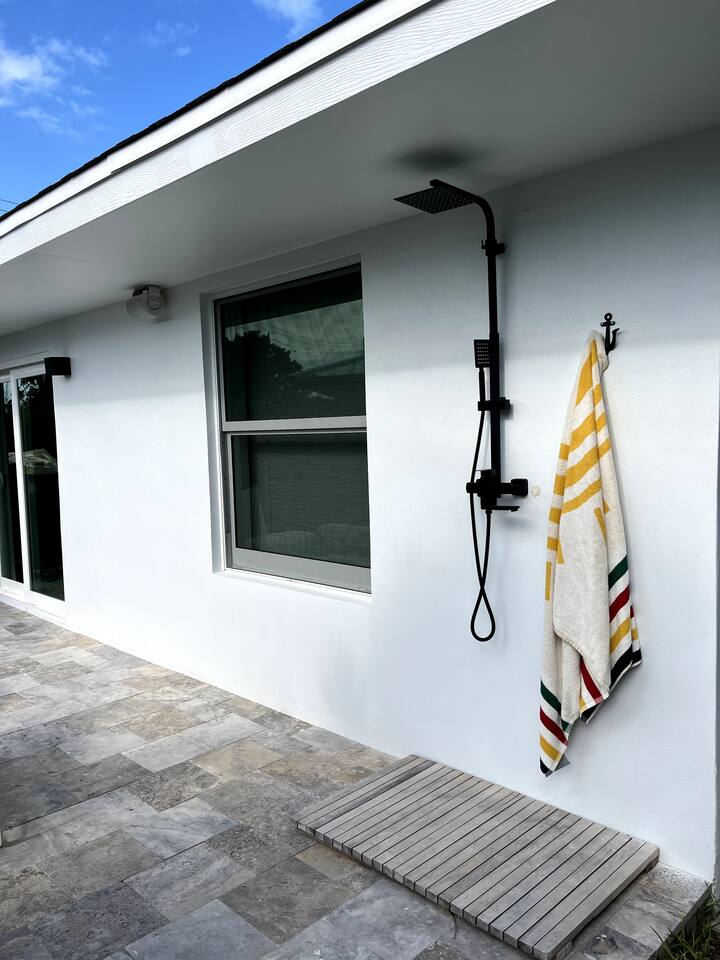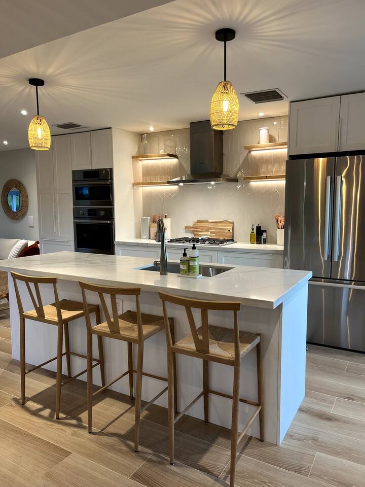 Discover Bahamian Pine, renovated Villa 583 offering a modern beach vibe in The Beach Villa's of Treasure Cay, Abaco. This crisp, clean oasis boasts quality furnishings, a fully equipped kitchen with high-end appliances, and a screened-in dining area. Step outside to find an outdoor shower and a cozy fire pit. Steps to the pool and the beach. Our tranquil retreat is perfect for couples or small families. Let us introduce you to the laid-back, barefoot beach lifestyle. Welcome to paradise!