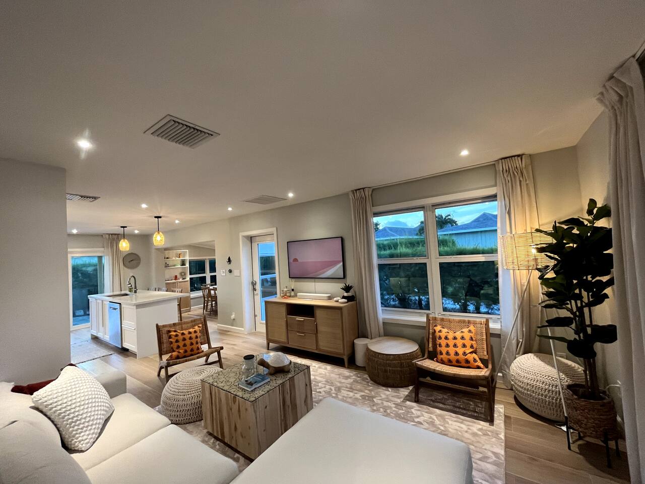 **Property Overview:** Bahamian Pine is a meticulously crafted villa in the heart of Treasure Cay, Bahamas. This serene retreat, steeped in love and family history, offers a perfect blend of modern luxury and island charm. Nestled in a quiet neighborhood, the villa is just steps away from the award winning beach. We are Villa 583 inside the Beach Villa Community of Treasure Cay **Rooms:** 1. **King Room ** Our spacious master suite features a comfortable king-sized bed, high-quality linens, and large windows that flood the room with natural light. You'll find plenty of storage space for your belongings, and a well-appointed en-suite bathroom for your convenience. 2. **Queen Room:** The Queen bedroom is designed for comfort and relaxation. It offers a cozy queen-sized bed, soft linens, and a serene atmosphere. Guests have easy access to an en-suite bathroom, ensuring privacy and convenience. 3. **Open Living Spaces:** The villa's open floorplan seamlessly connects the living room, dining area, and fully-equipped kitchen. You'll find upscale furnishings, modern amenities, and a tasteful beach-inspired decor that makes you feel right at home. 4. **Screened-In Patio:** One of the highlights of Bahamian Pine is the screened-in patio. This outdoor oasis offers a comfortable seating area where you can enjoy the gentle sea breeze while being protected from insects. It's an ideal spot for morning coffee, evening cocktails, or simply unwinding with a good book. 6. **Outdoor Amenities:** The villa also offers outdoor amenities, including a fire pit for evening gatherings, an outdoor shower for rinsing off after a day at the beach, and a Gas Grill. **Overall Experience:** At Bahamian Pine, you can expect a welcoming, well-maintained, and thoughtfully designed property. It's a place where you can unwind, create lasting memories, and experience the magic of Treasure Cay. Whether you're looking for a romantic escape, a family adventure, or a tranquil getaway, our villa offers the perfect setting for your dream vacation. We're here to ensure your stay is as comfortable and memorable as possible. Welcome to your home away from home in paradise!